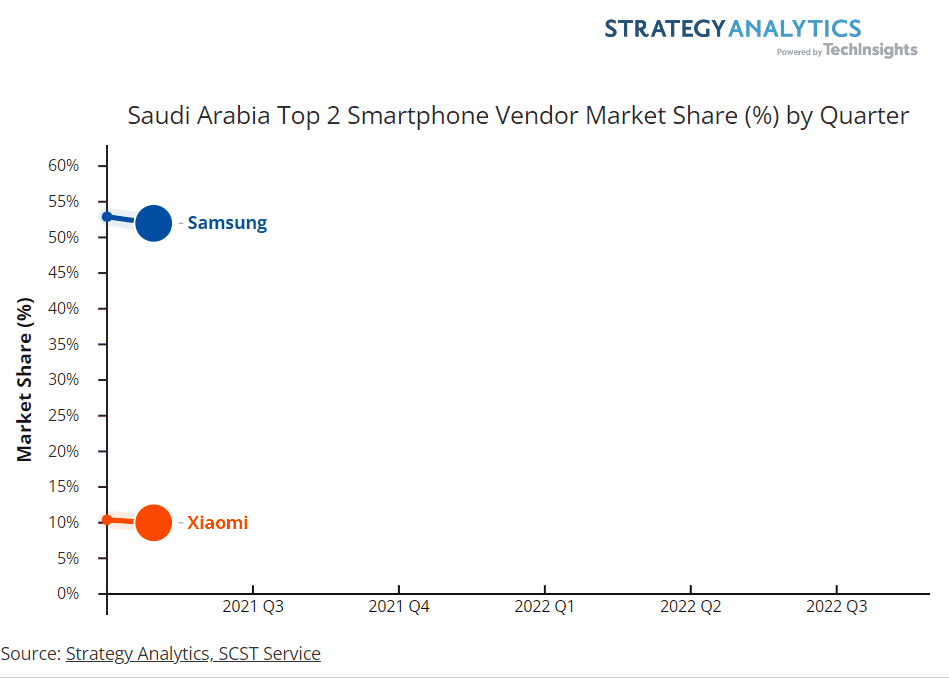 Strategy Analytics:2022 年第三季度沙特阿拉伯智能手机市场停滞不前