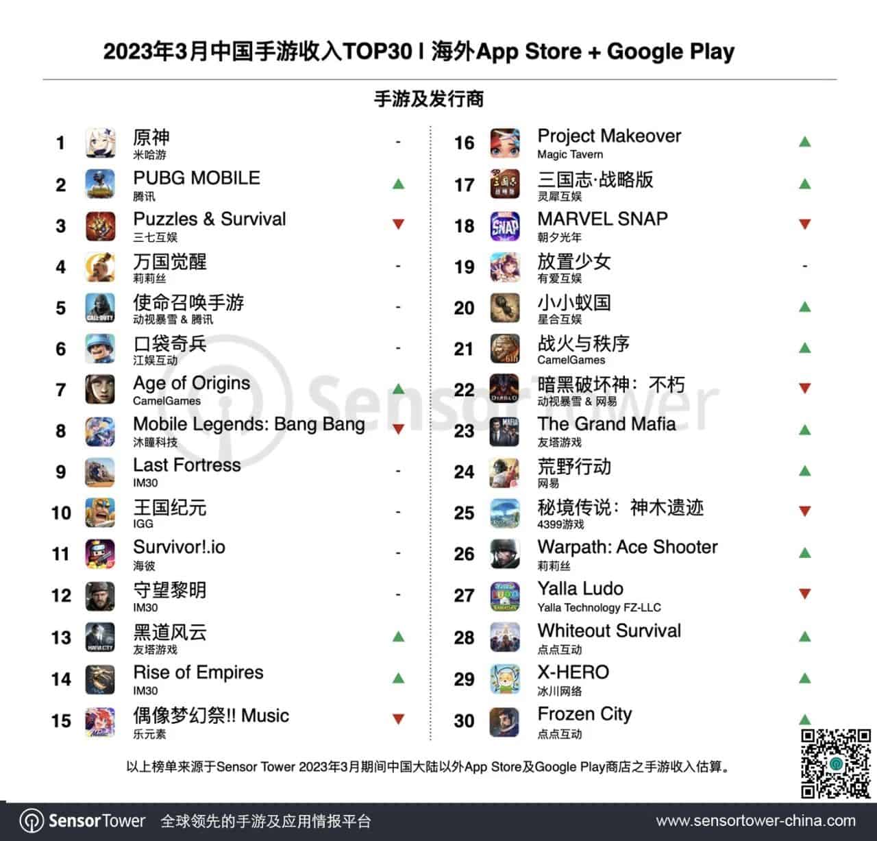 2023 年 3 月成功出海中国手游:《PUBG Mobile》重回海外收入增长榜榜首,点点互动、莉莉丝新游表现亮眼